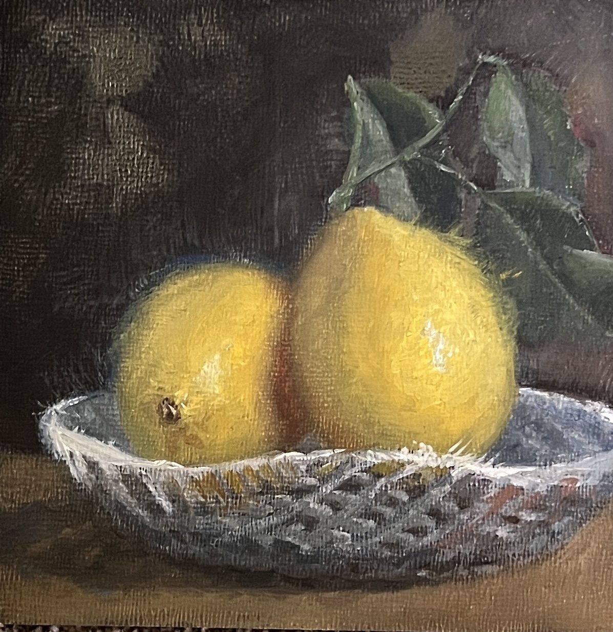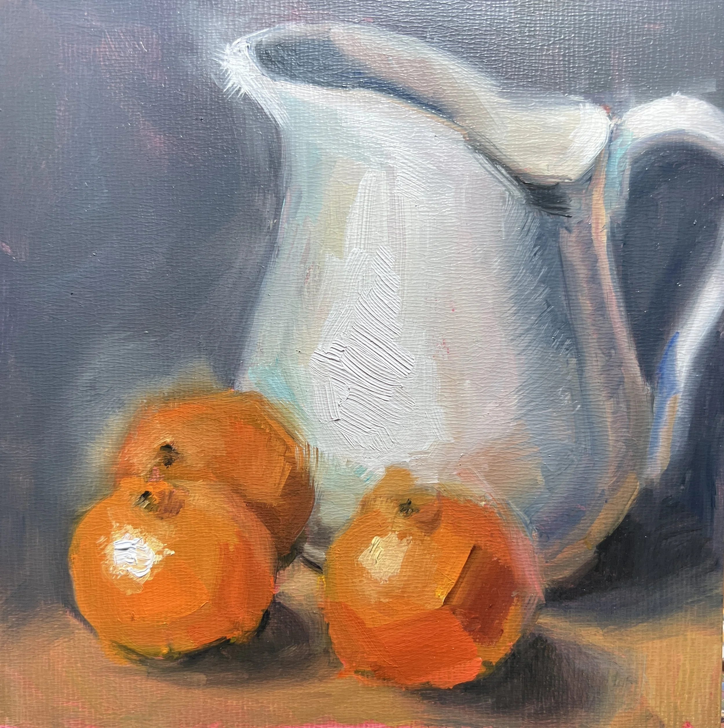 Mary's Clementines (6x6, oil on canvas) $150 (framed)